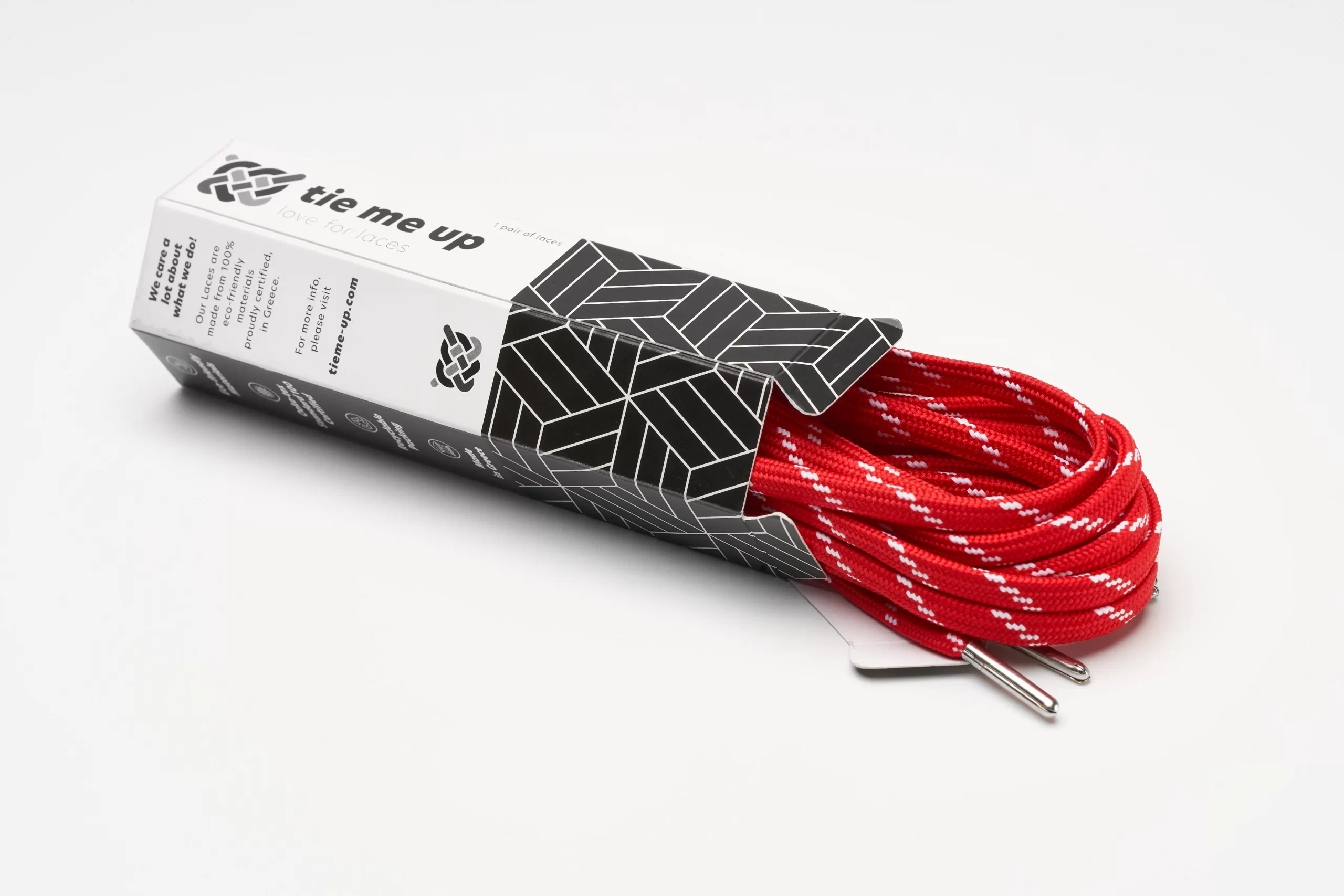 Change your shoelaces with fashion shoeleces from tieme-up and update your style to the next level.Create unique combos that stand out.Its time to complete your own style and tie your shoes up with premium fashion shoelaces.Flat shoelaces 7mm Red with dots 155cm(61”). Made of 100% recycle polyester. OEKOTEX certified and made in Greece