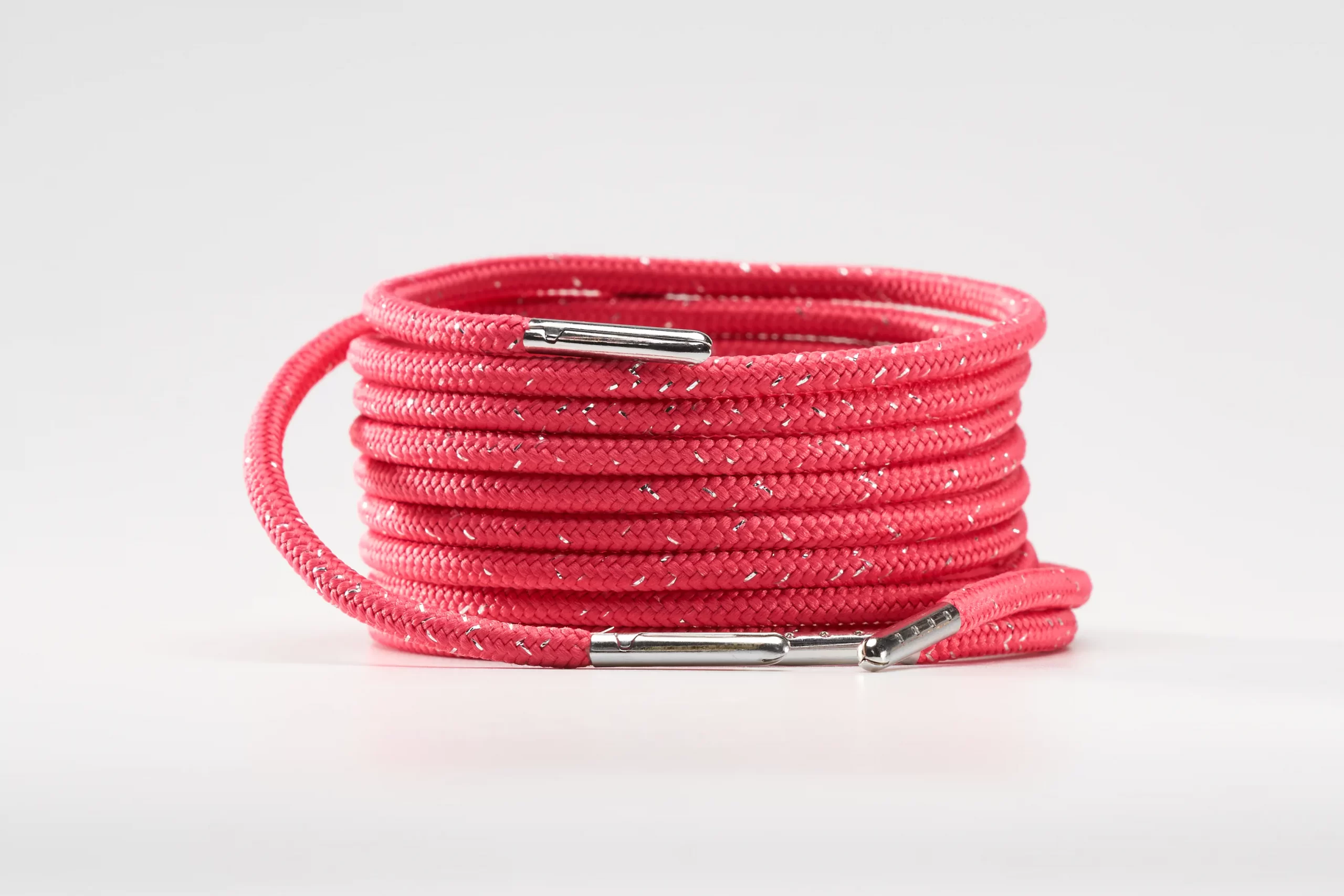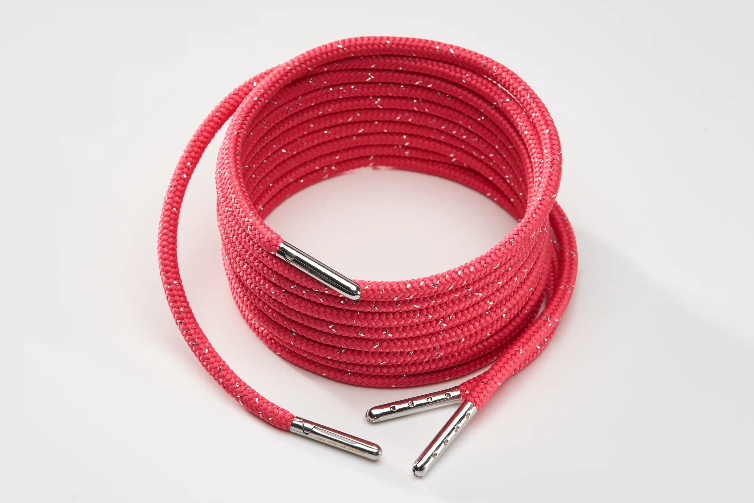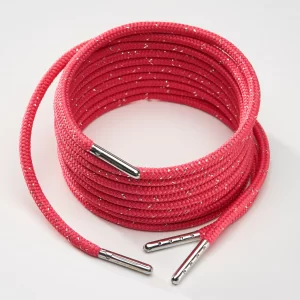 round durable, high qualitys hoelaces 4mm fuschia with metallic effect 70cm(24”) for sneakers or boots with 4 holes. The shoelaces come with silver metallic endings.