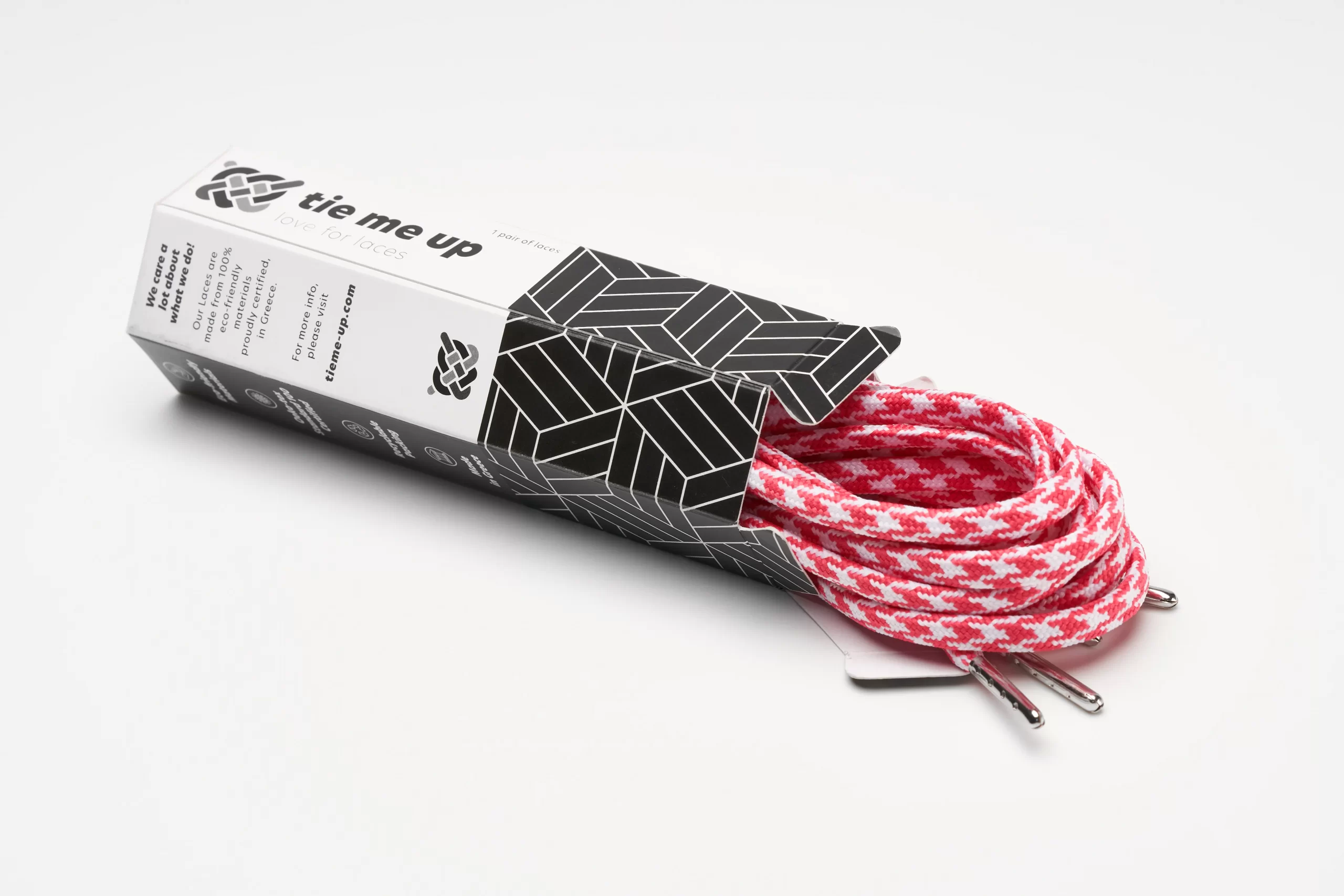 Change your shoelaces with fashion shoeleces from tieme-up and update your style to the next level.Create unique combos that stand out.Its time to complete your own style and tie your shoes up with premium fashion shoelaces.Round shoelaces 4mm fuschia with pattern 155cm(61”). Made of 100% recycled polyester. OEKOTEX certified and made in Greece.